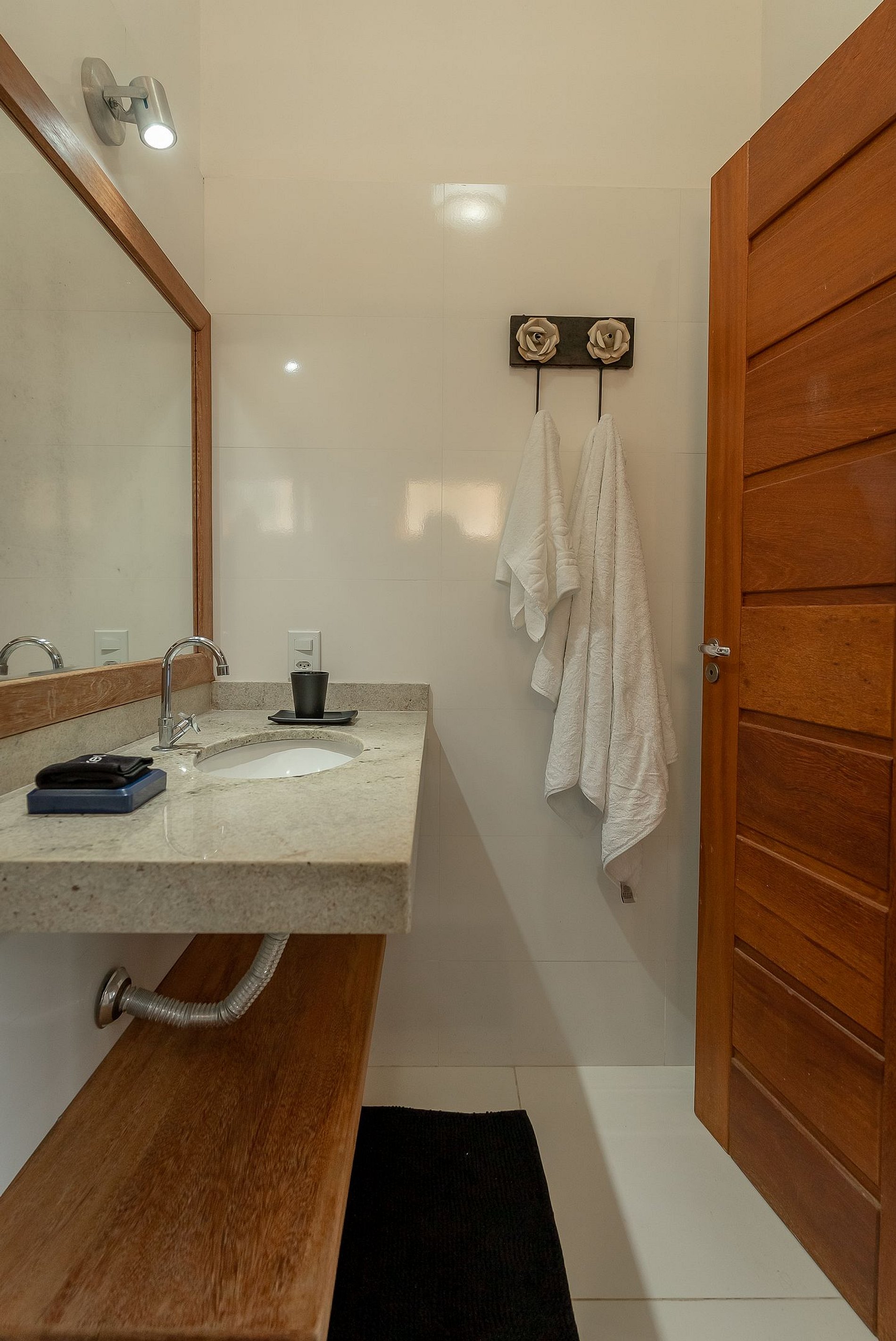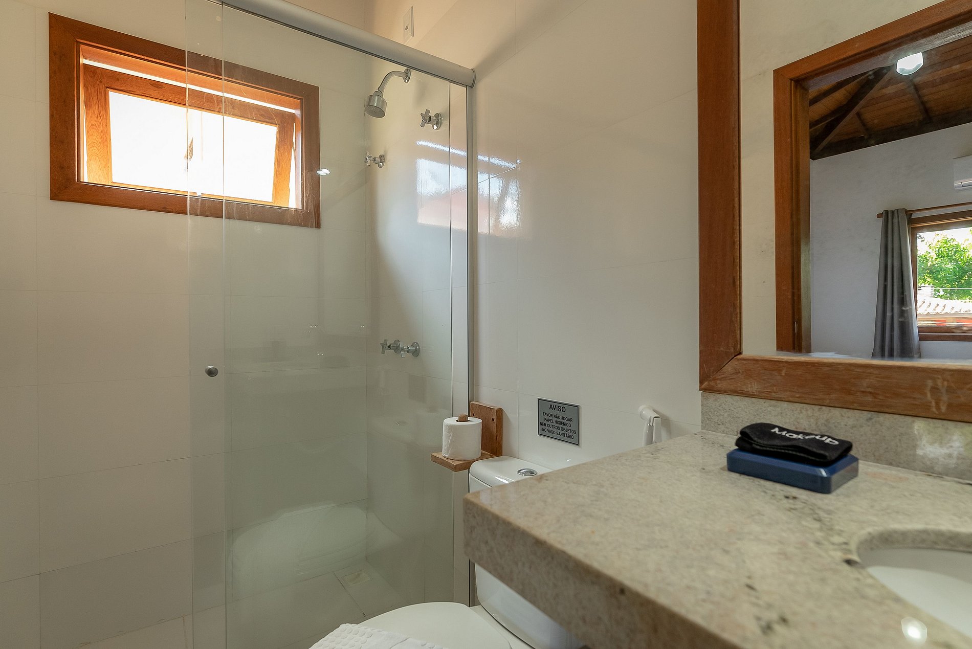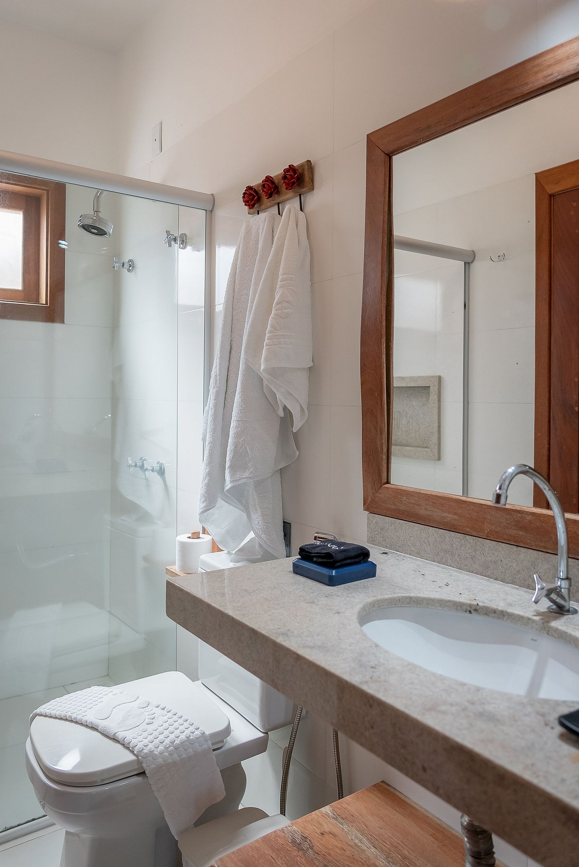 Os banheiros tem duchas com água pressurizada e aquecida com energia solar e boiler, o que garante um banho relaxante e delicioso.
