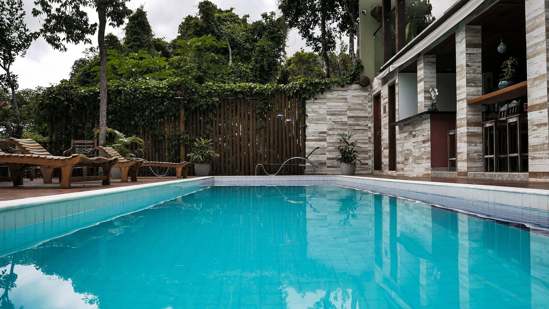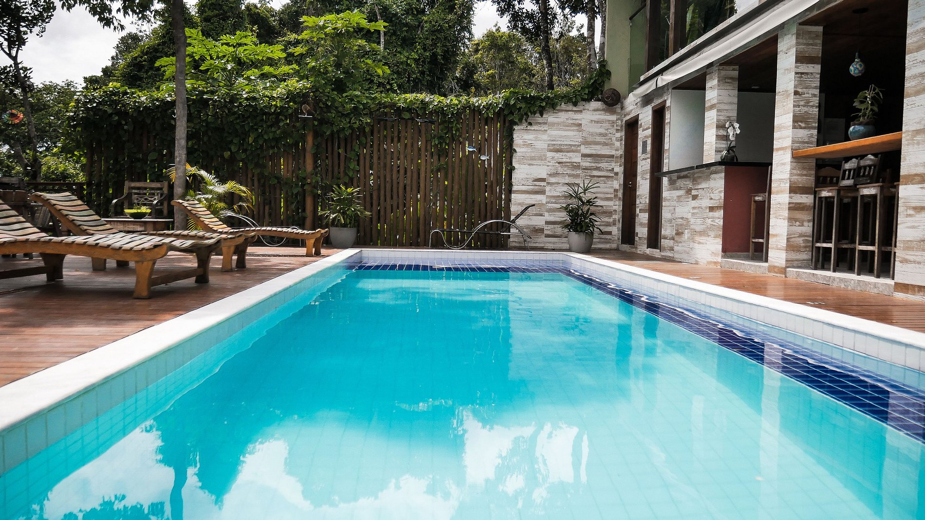 # 1.2. Área de lazer comum com PISCINA de 12mtsx4mts e amplo DECK DE MADEIRA com vista para a natureza, pássaros e copas das árvores com bela vista do vale dos gringos, integrados com uma bem equipada ÁREA GOURMET, além de um salão de jogos com SINUCA e SmarTv 50 polegadas com canais a cabo/satélite.