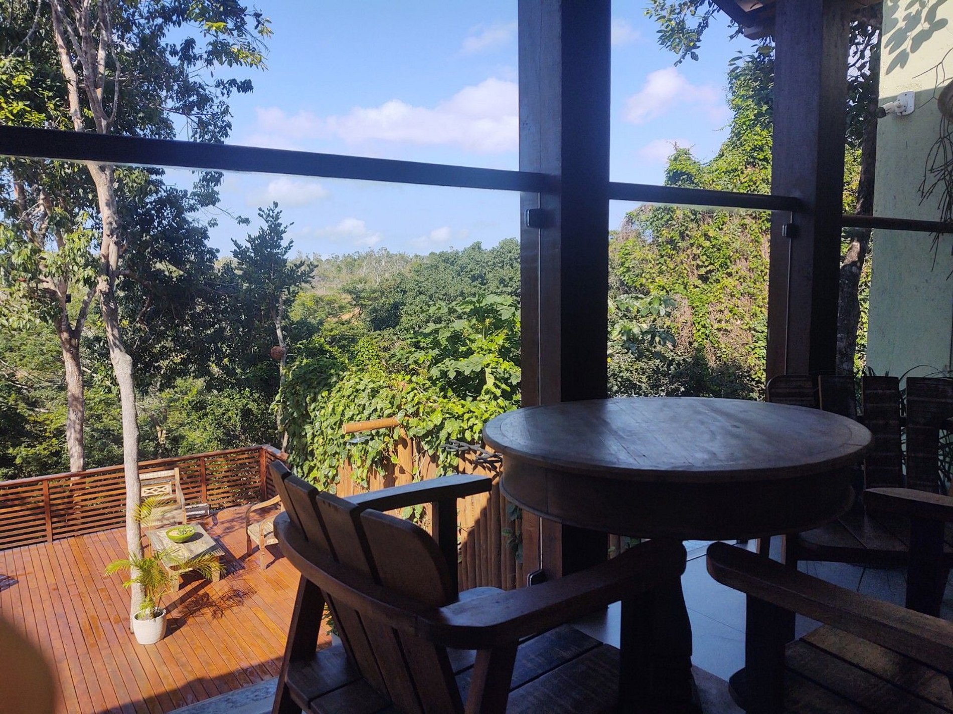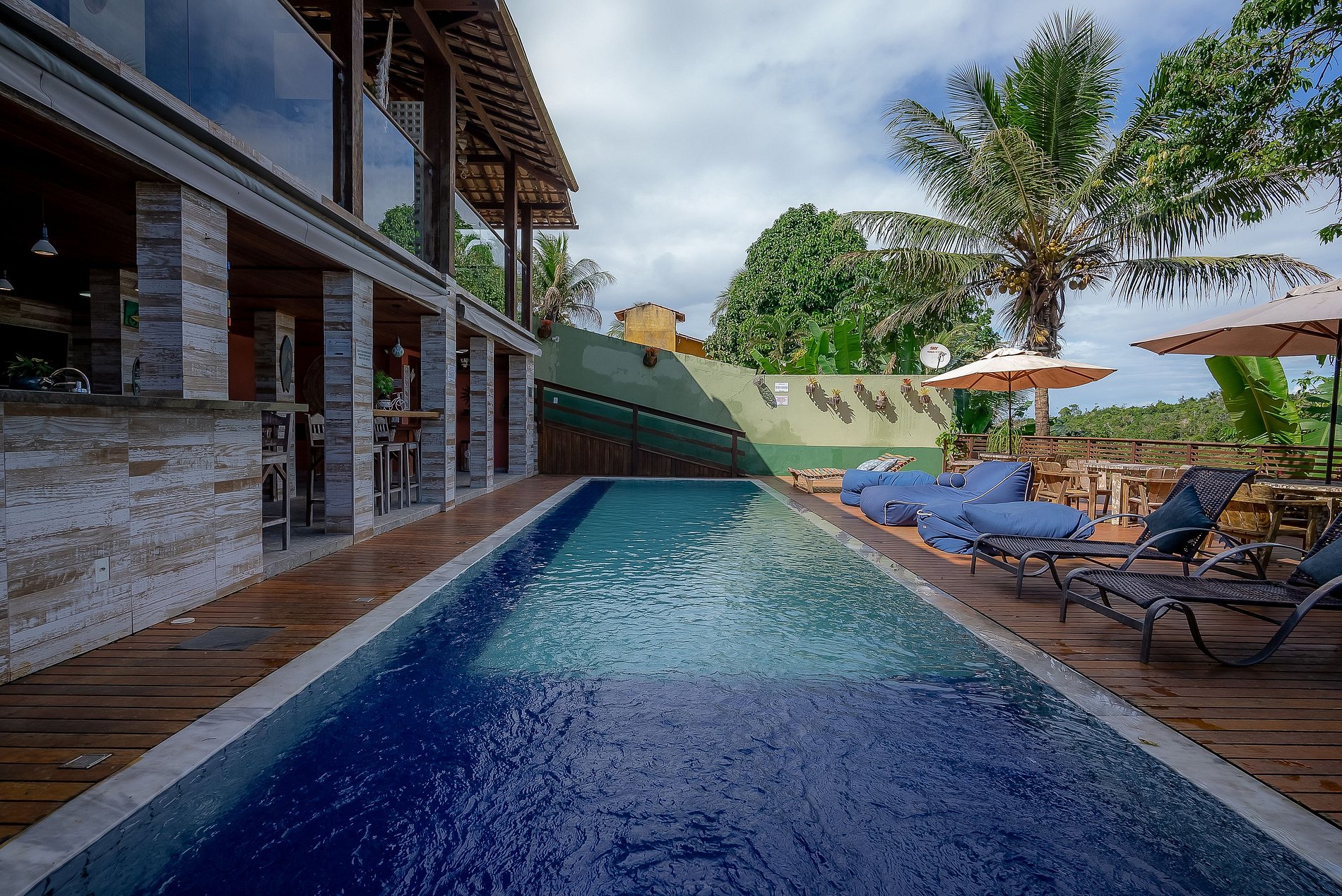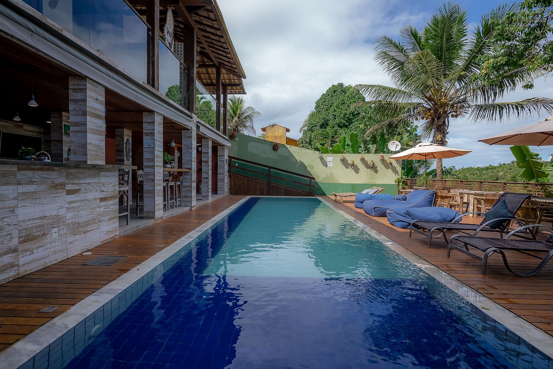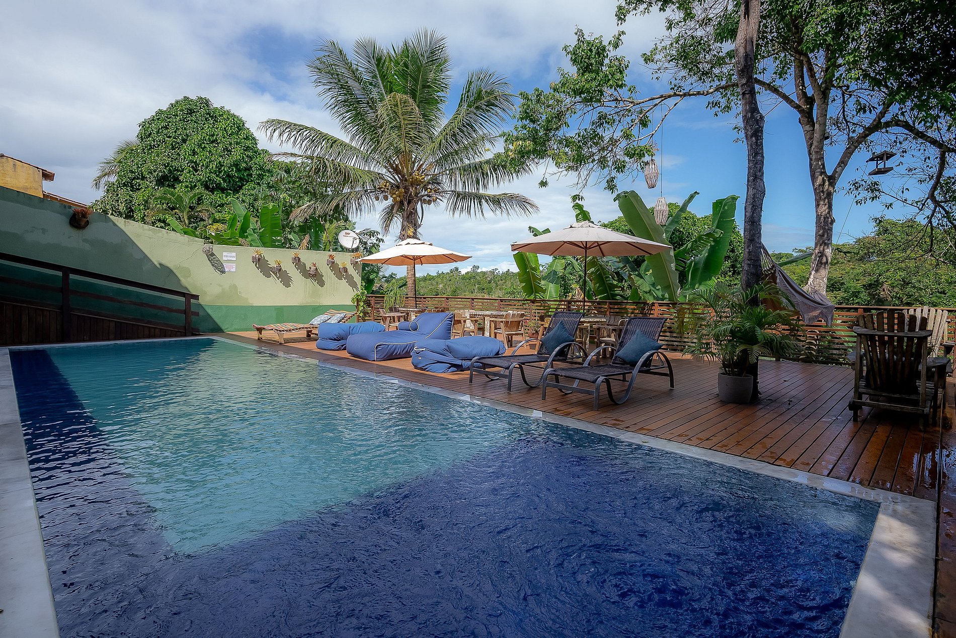 O amplo deck de madeira garapa com mais de 120 m2, conta com espreguiçadeiras e uma linda piscina. Fica literalmente debruçado para as copas de árvores do vale dos gringos/mucugê com inúmeros e variados pássaros e animais silvestres como micos.
