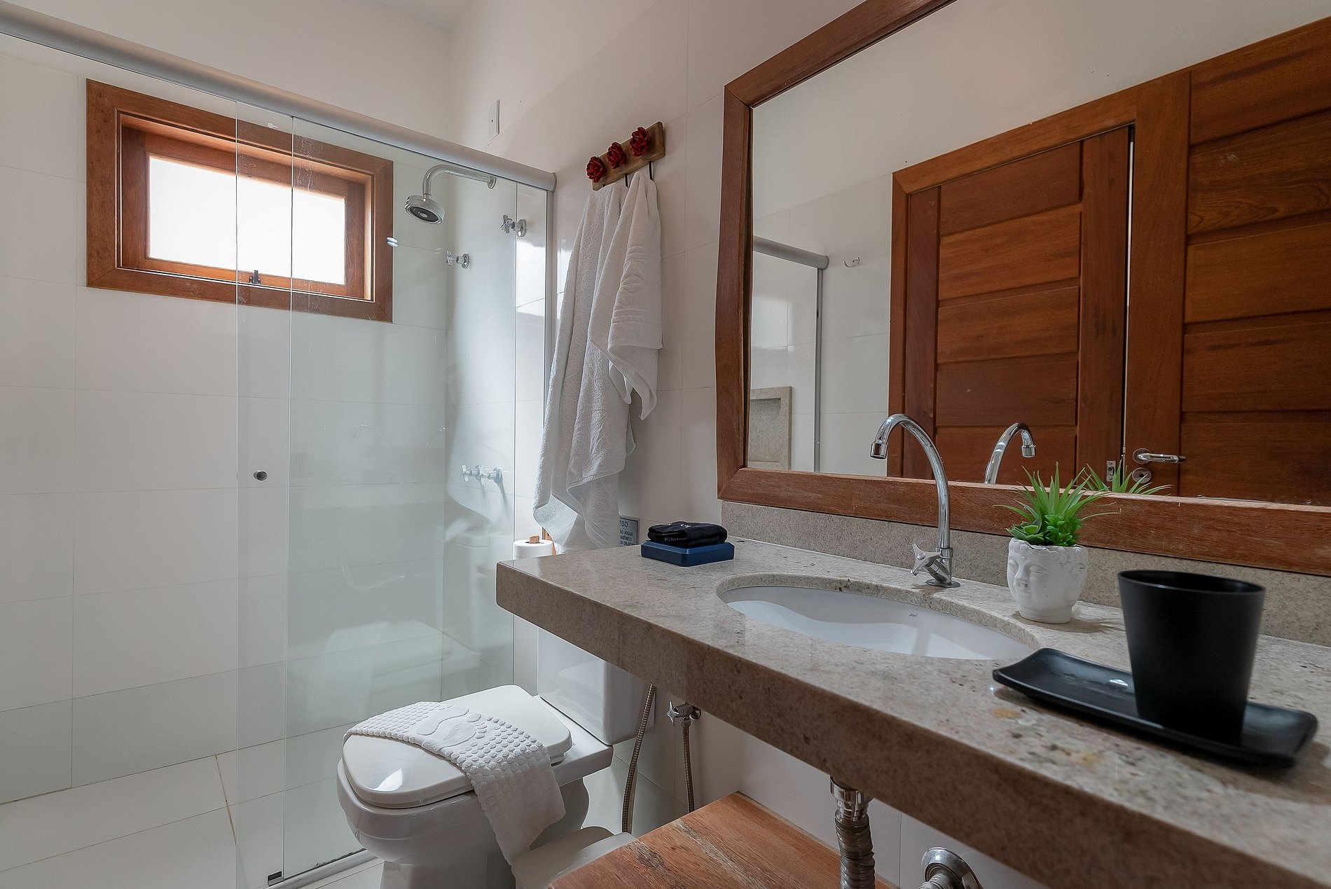 Os banheiros tem duchas com água pressurizada e aquecida com energia solar e boiler, o que garante um banho relaxante e delicioso.