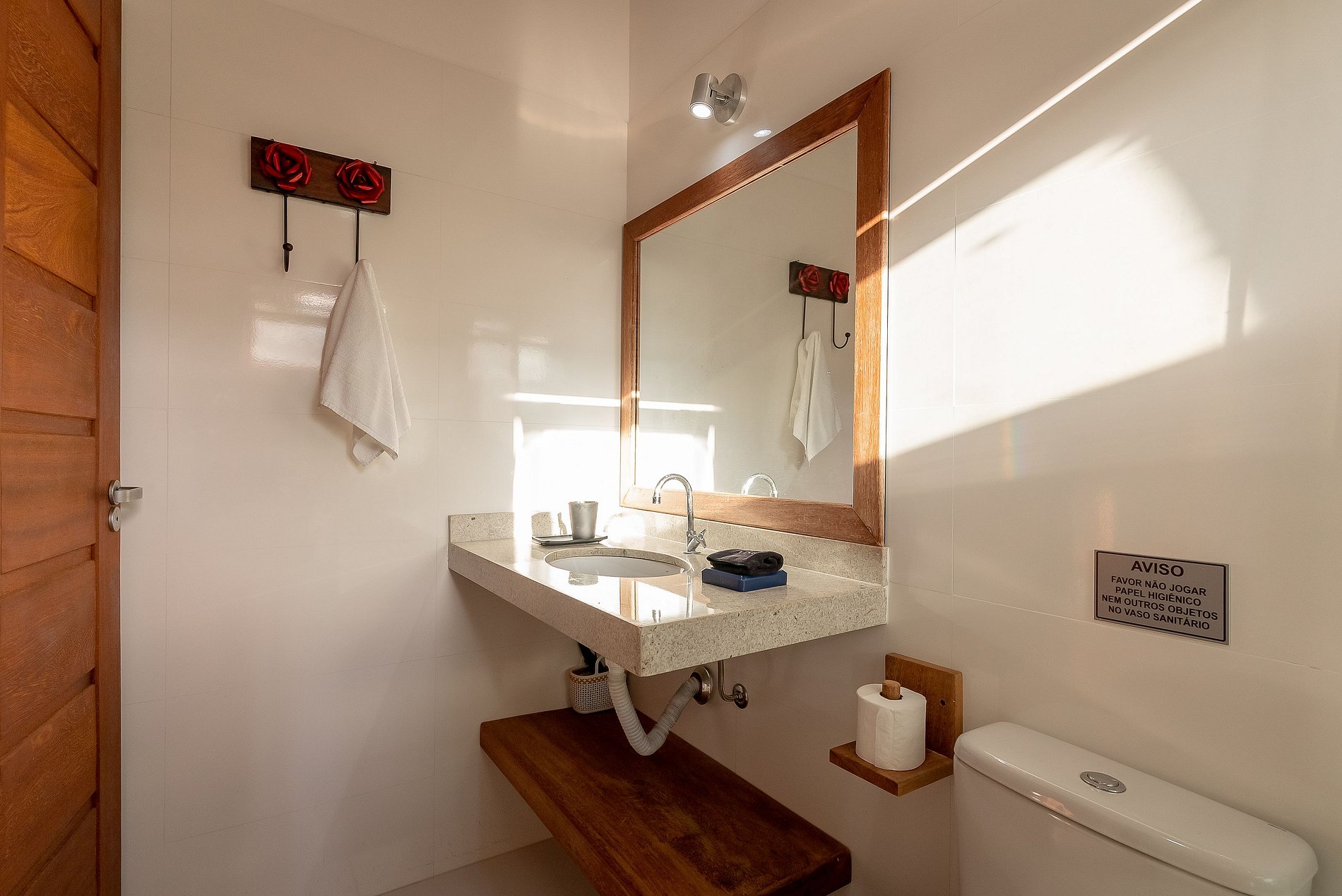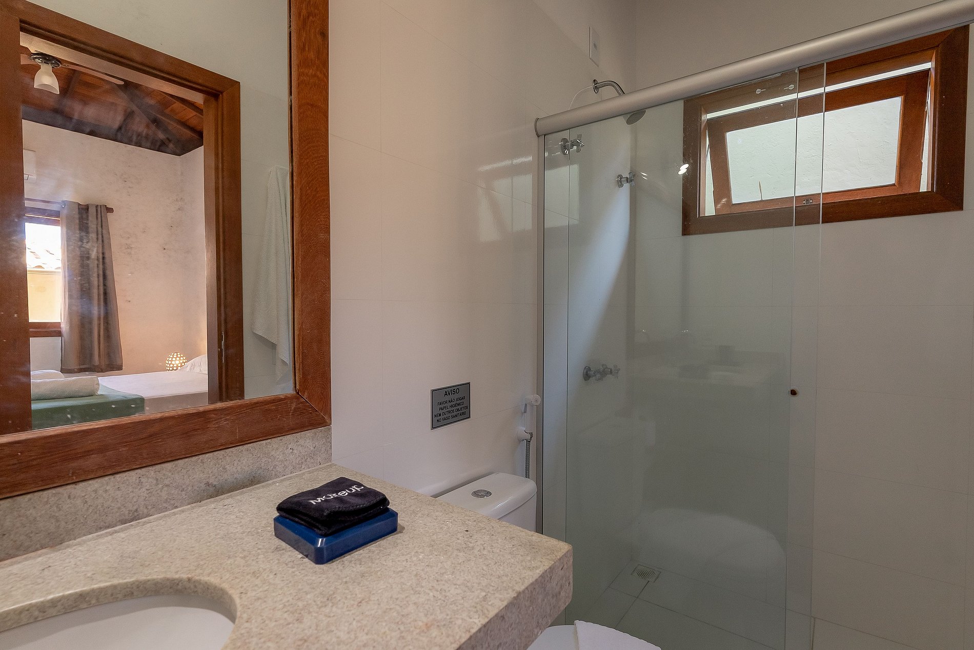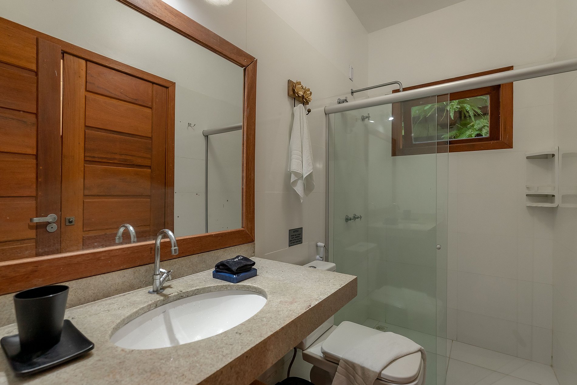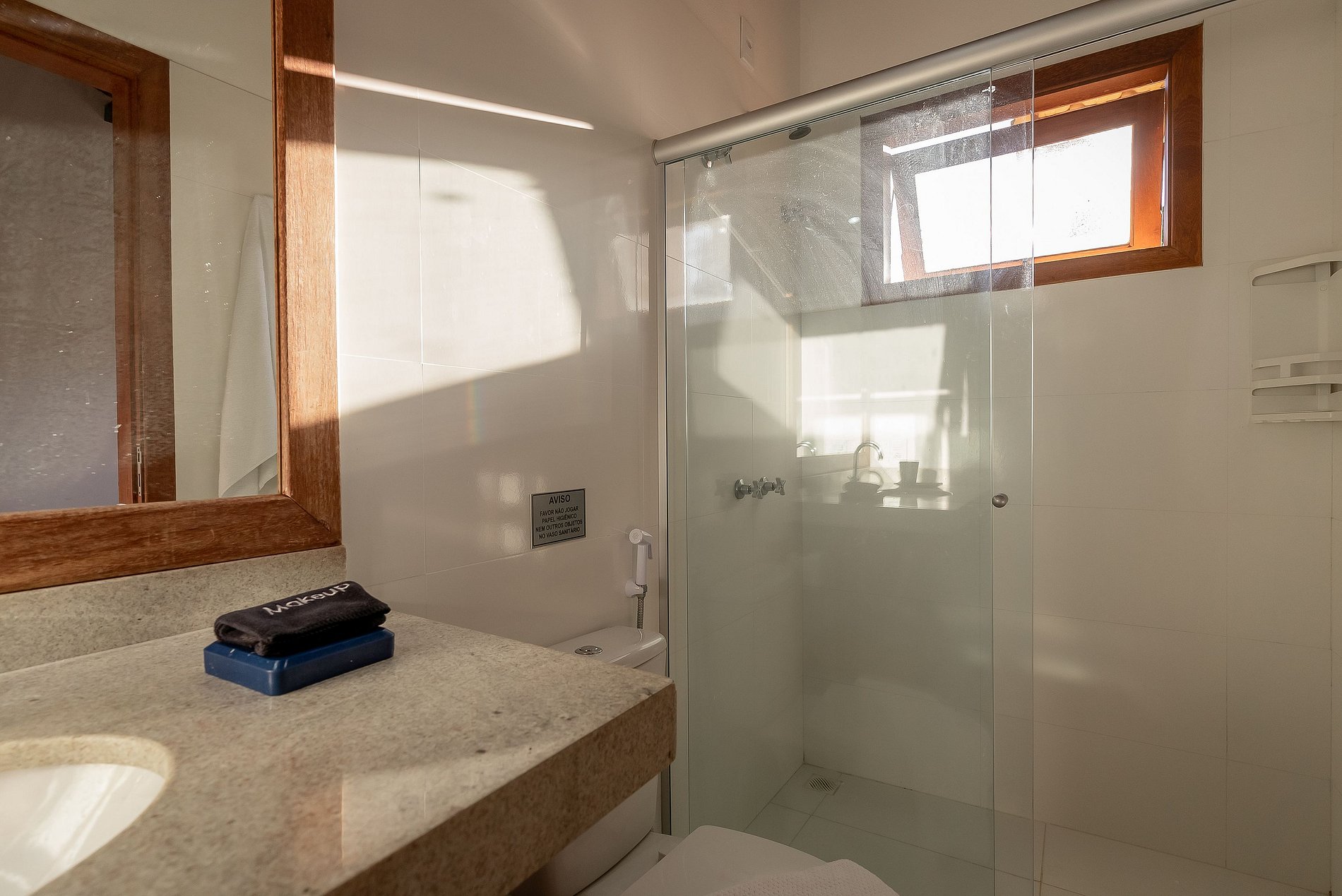 Os banheiros tem duchas com água pressurizada e aquecida com energia solar e boiler, o que garante um banho relaxante e delicioso.