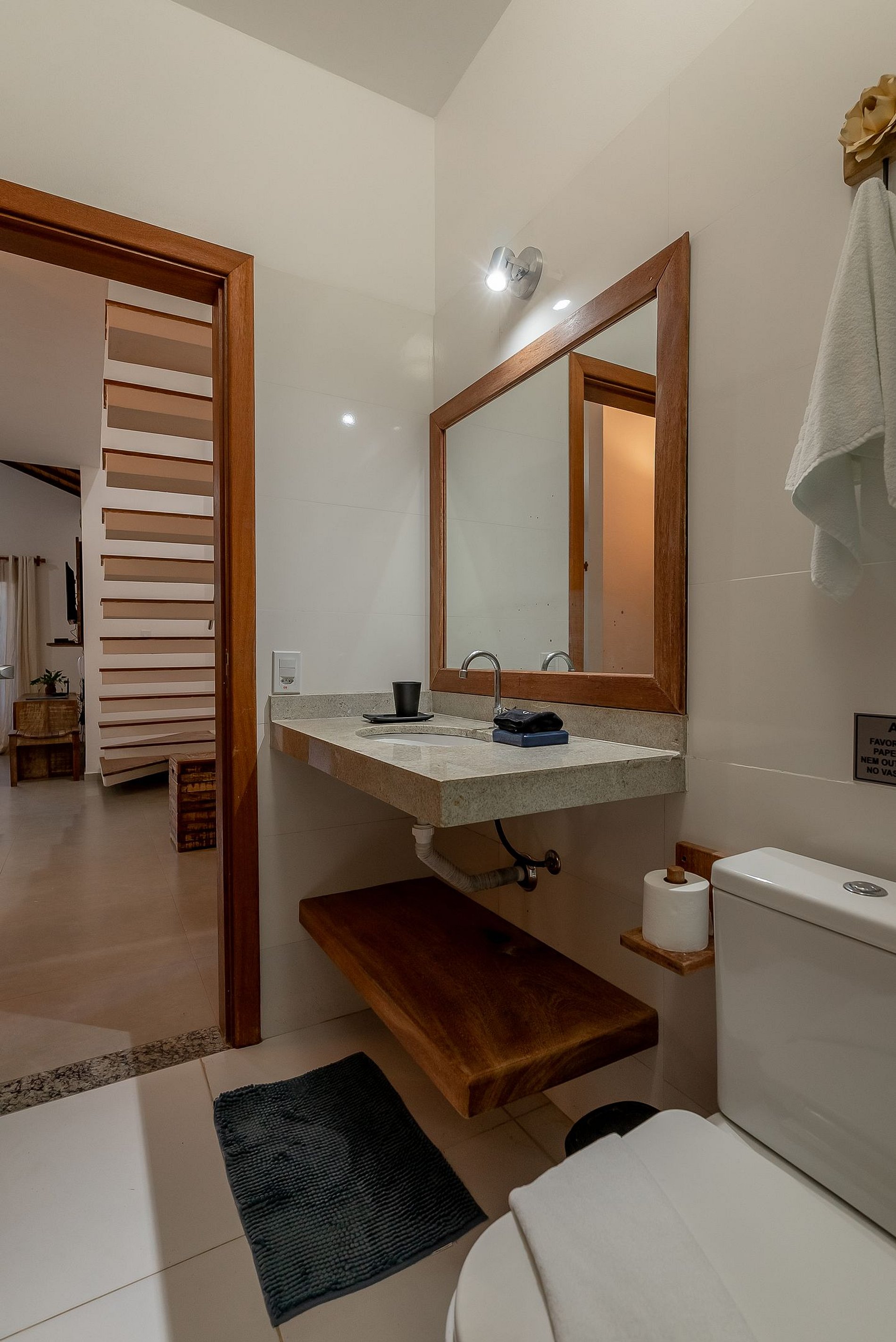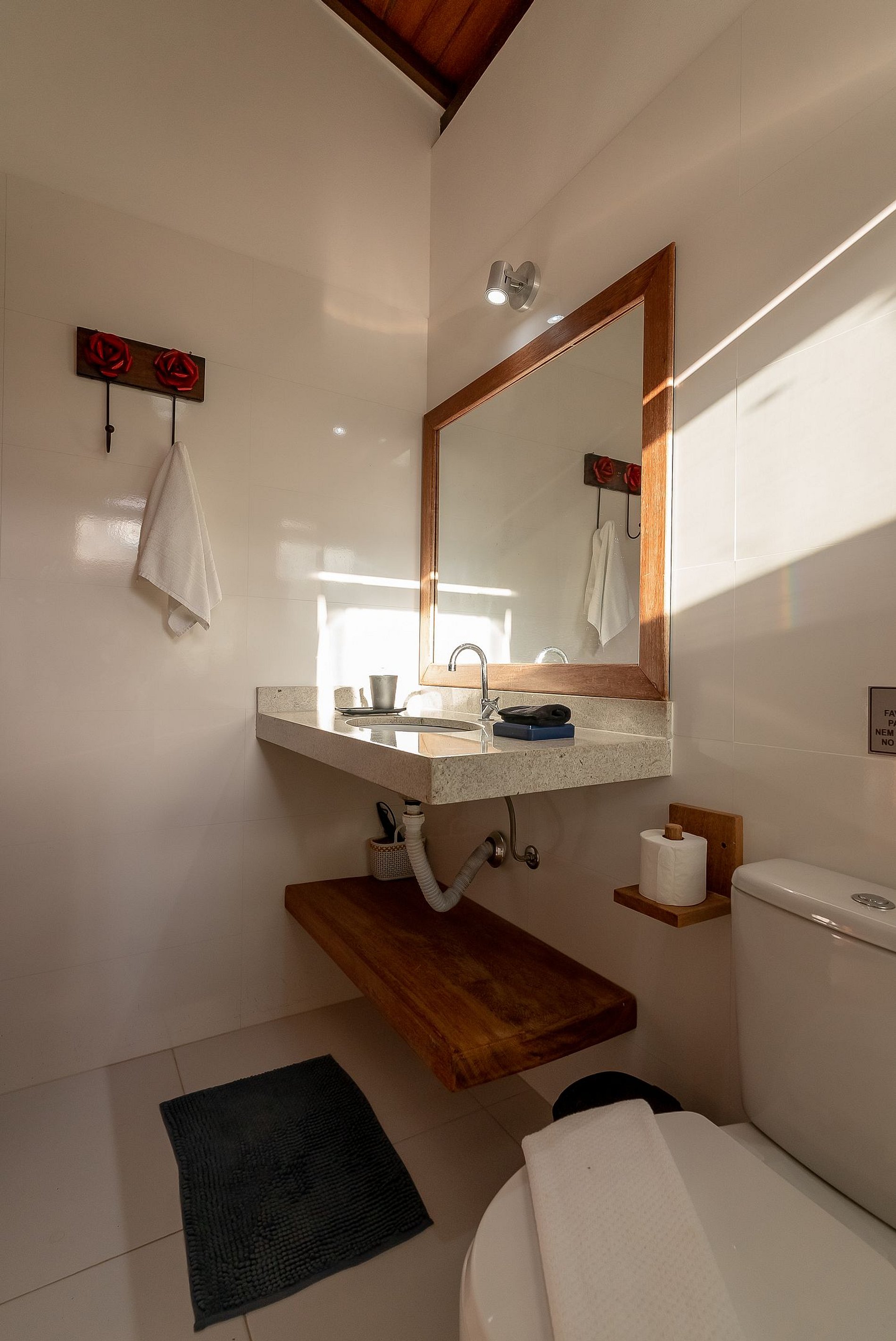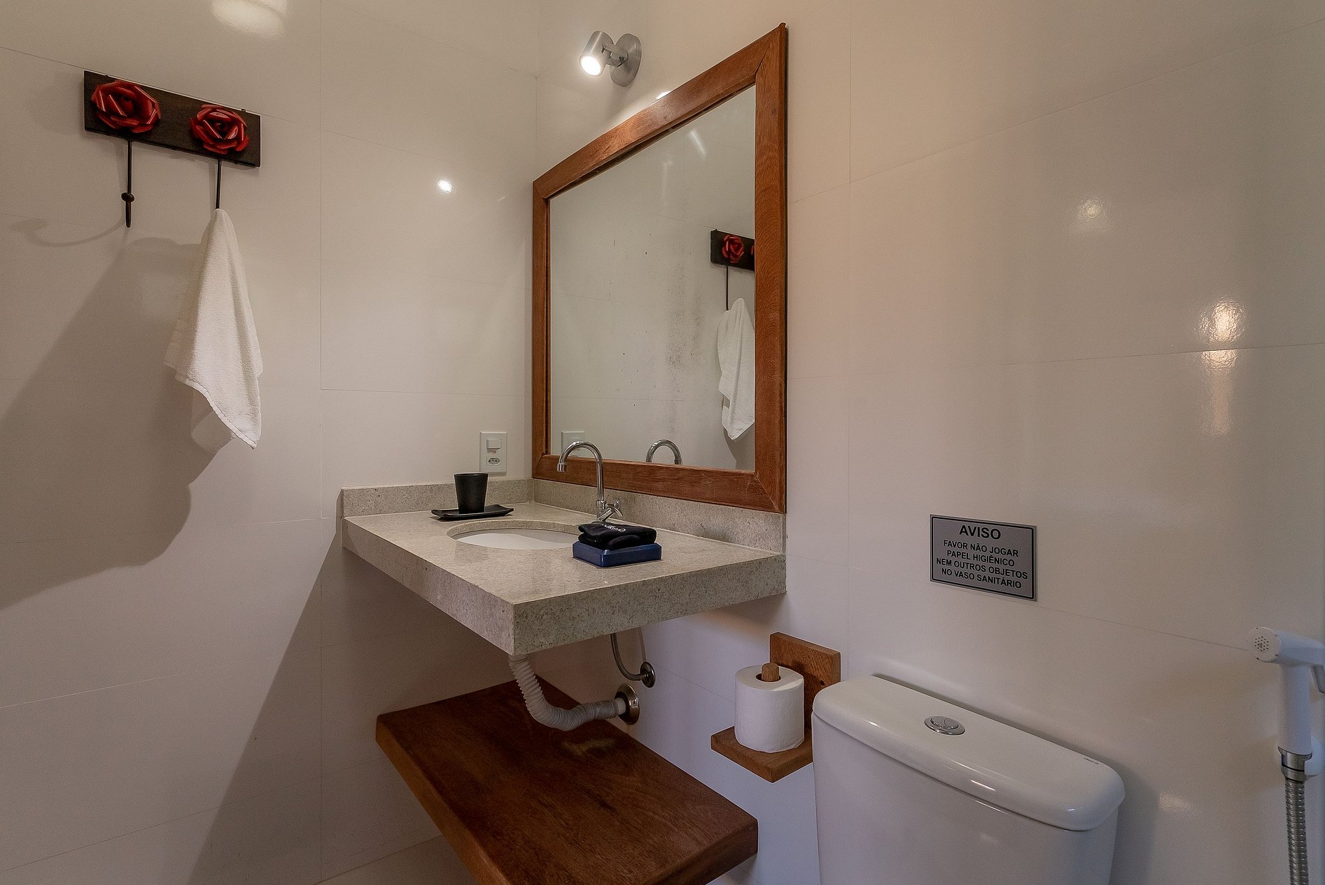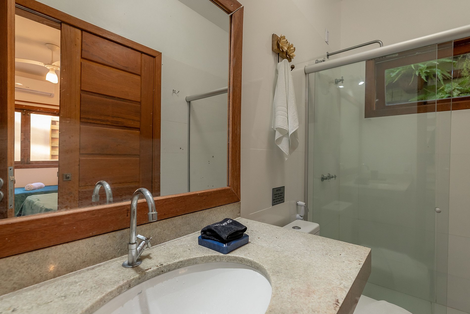 Os banheiros tem duchas com água pressurizada e aquecida com energia solar e boiler, o que garante um banho relaxante e delicioso.