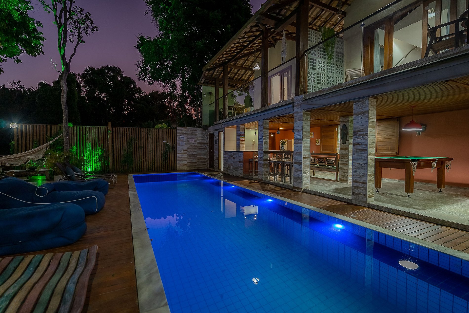 Somente hóspedes podem usar as áreas comuns como amplo deck, piscina, área gourmet, salão de jogos com sinuca e TV SMARTV com canais via satélite, wi-fi de alta velocidade e estacionamento para até 8 carros com portão eletrônico