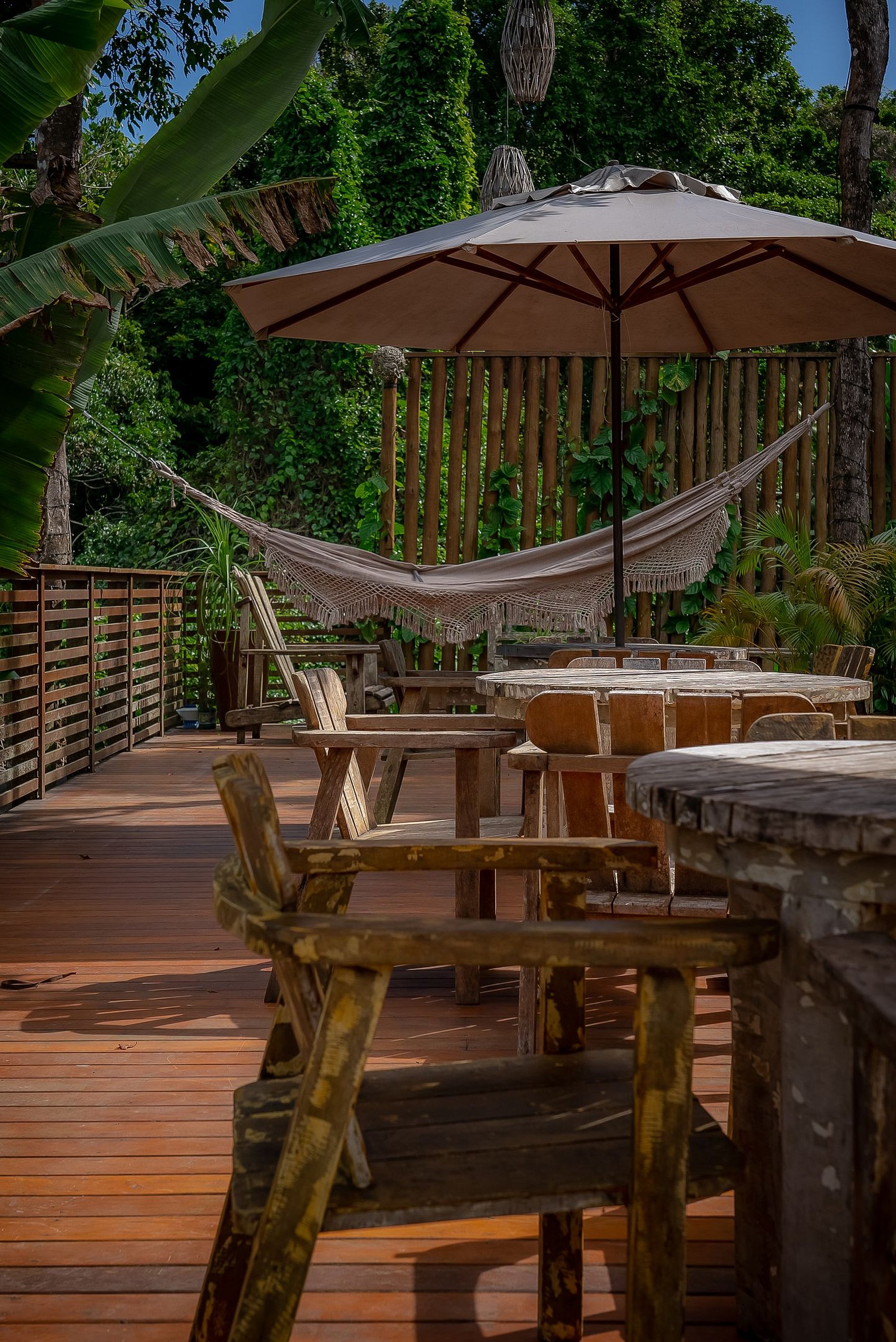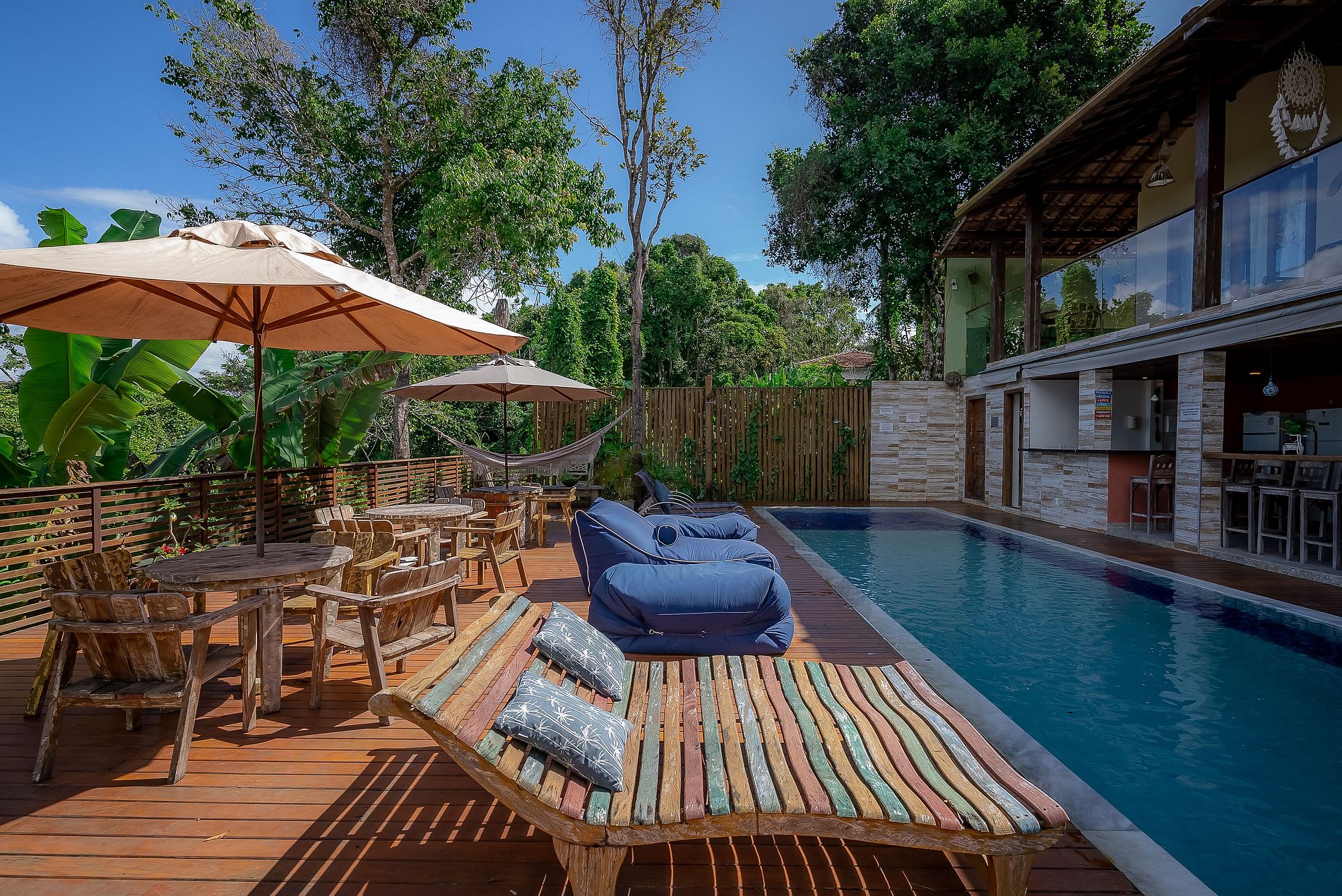 O amplo deck de madeira garapa com mais de 120 m2, conta com espreguiçadeiras e uma linda piscina. Fica literalmente debruçado para as copas de árvores do vale dos gringos/mucugê com inúmeros e variados pássaros e animais silvestres como micos.