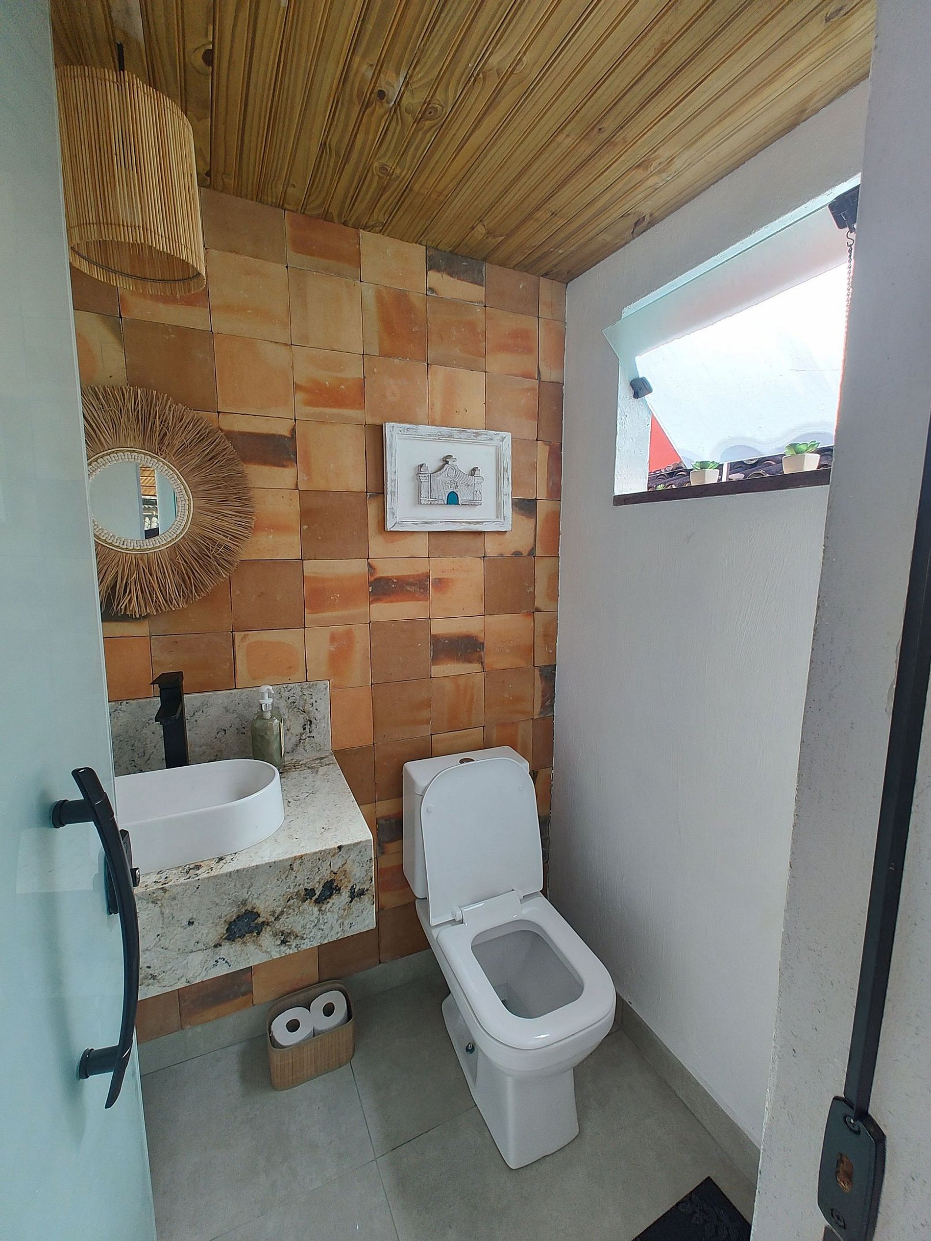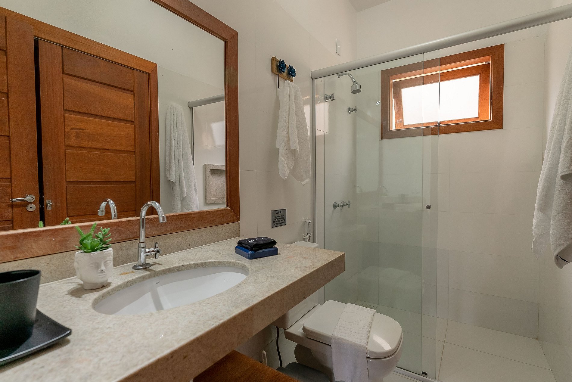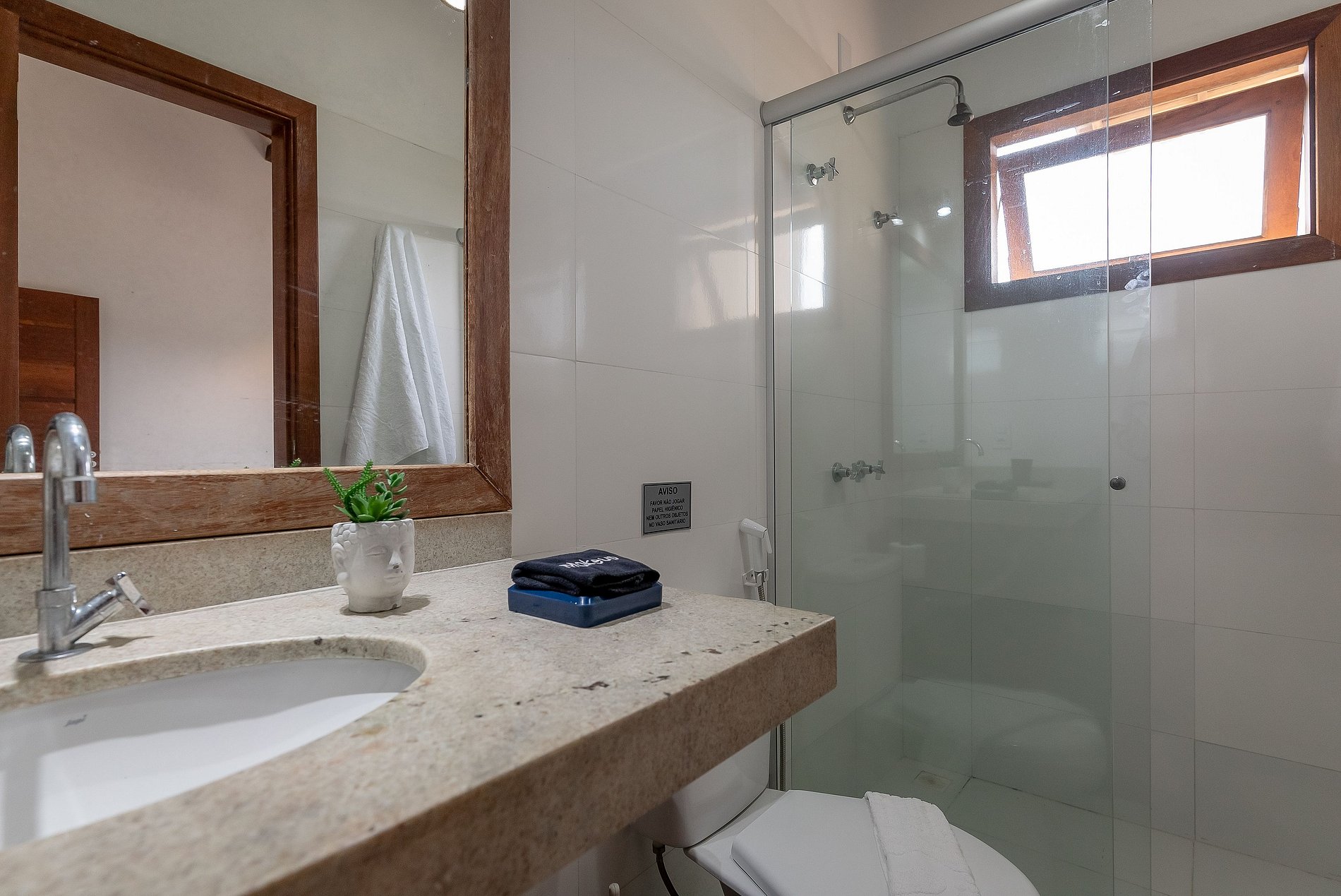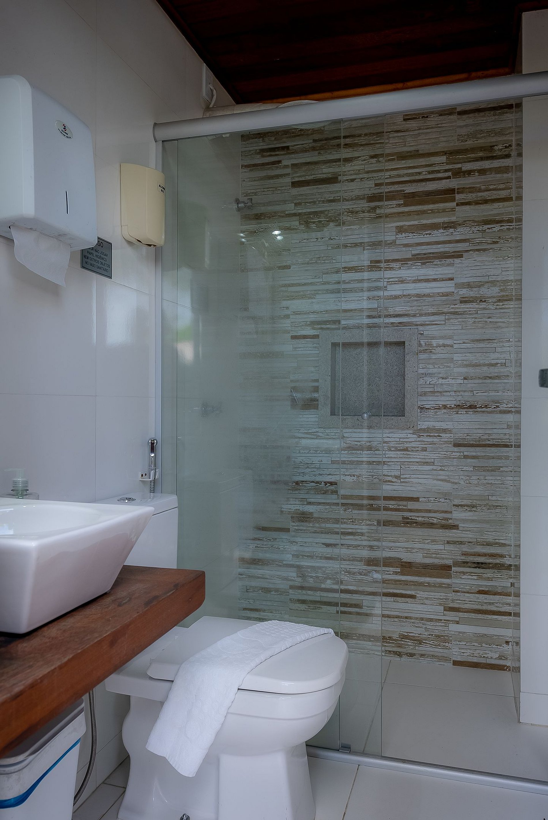 Os banheiros tem duchas com água pressurizada e aquecida com energia solar e boiler, o que garante um banho relaxante e delicioso.
