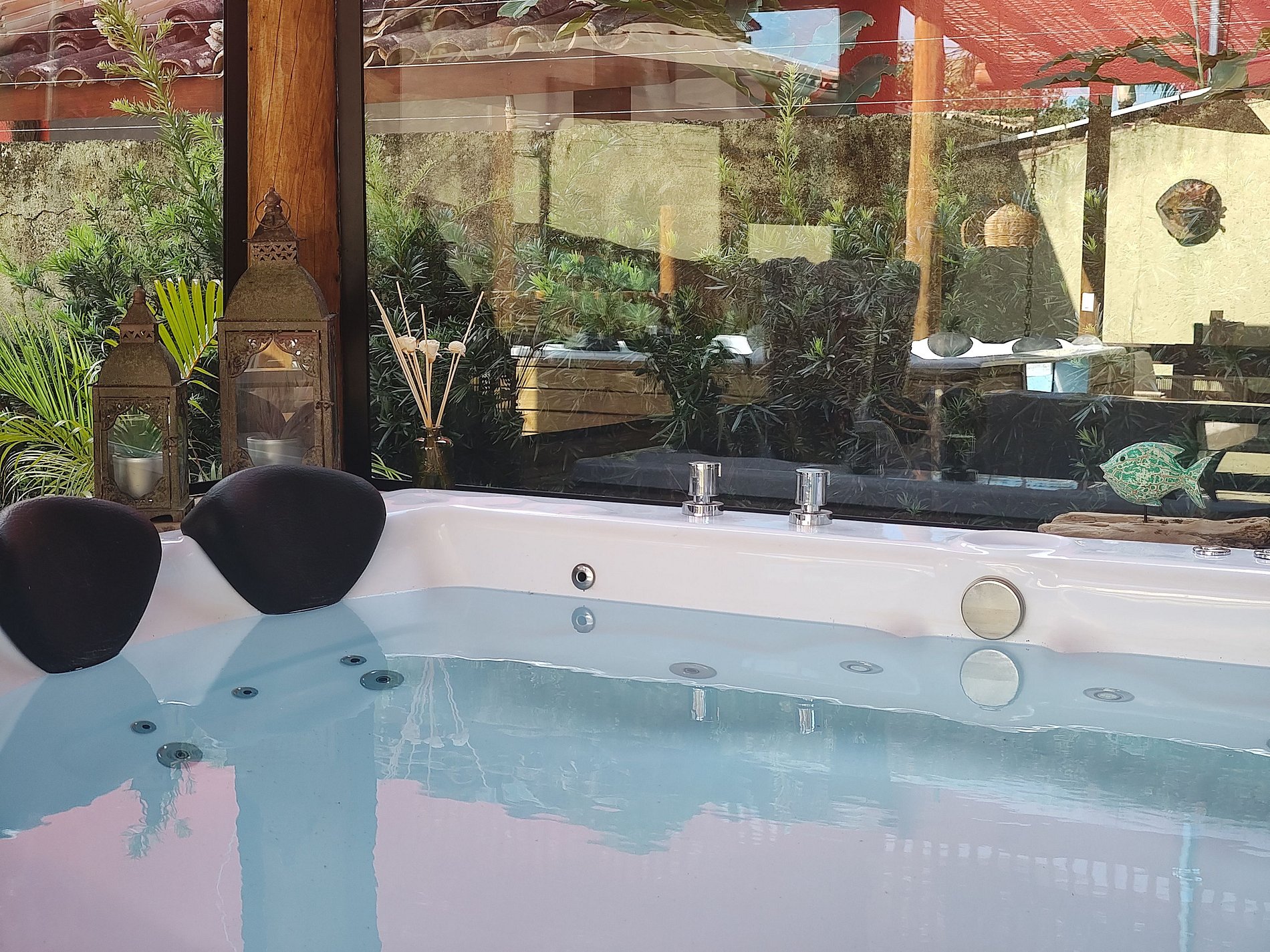 Em novembro de 2024 inauguramos nossa nova e requintada área de SPA com 2 banheiras de hidromassagem (jacuzzi) com aquecimento com capacidade para até 8 (oito) pessoas, uma relaxante sauna a vapor para até 15 pessoas, lavabo, mesa com cadeiras e 2 sofás, SmarTV 50 polegadas com canais a cabo/satélite, área de relax com espreguiçadeiras e uma bela ducha pressurizada.